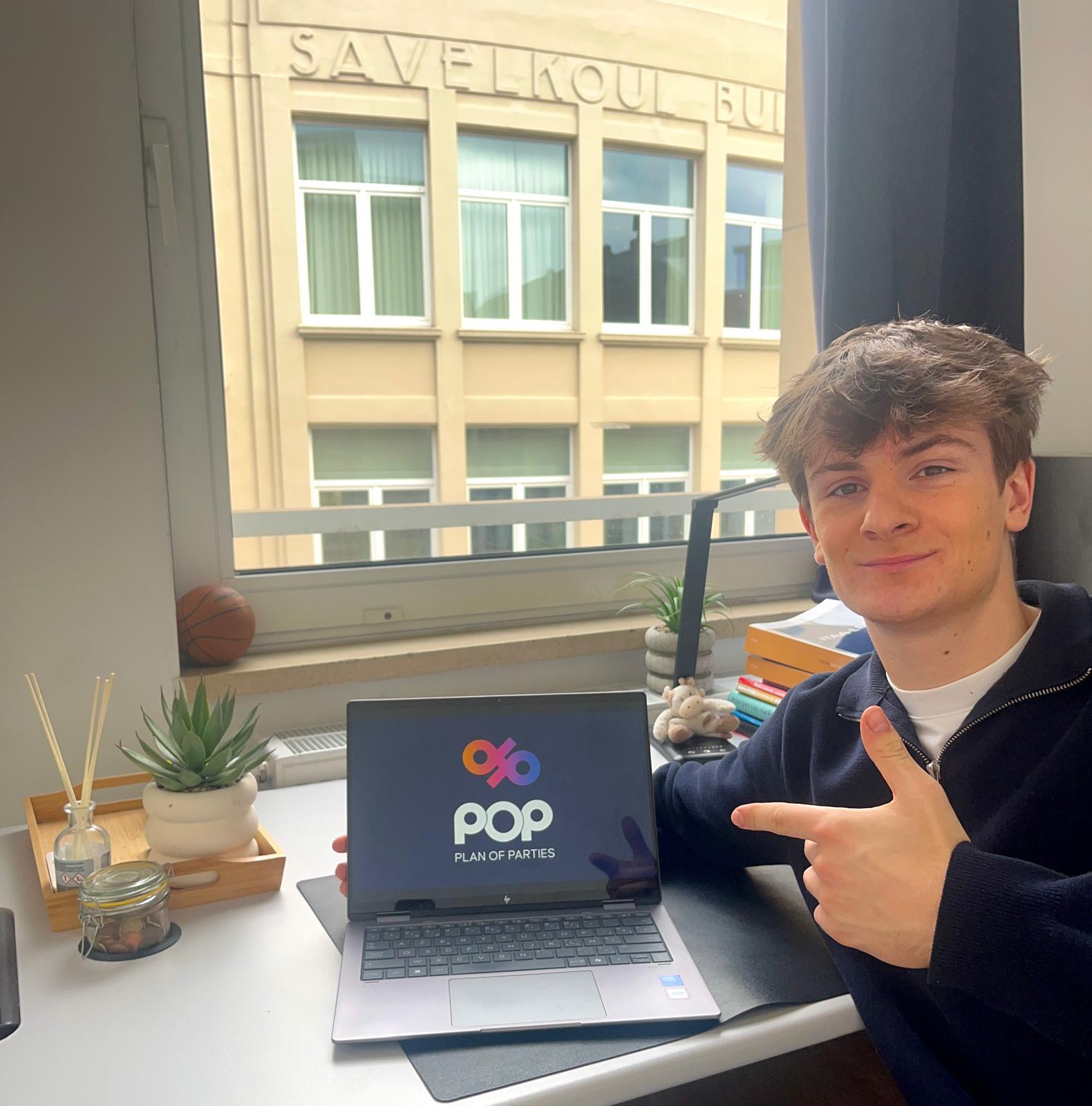 Rune Wens (20), student handelswetenschappen aan de KU Leuven, combineerde zijn passie voor ondernemen met een gemis in de uitgaanswereld. Zo creëerde hij een app genaamd ‘Plan of Parties’, aka POP. Zo kan iedereen die zin heeft om te feesten meteen kijken waar en wanneer er feestjes in de buurt zijn.